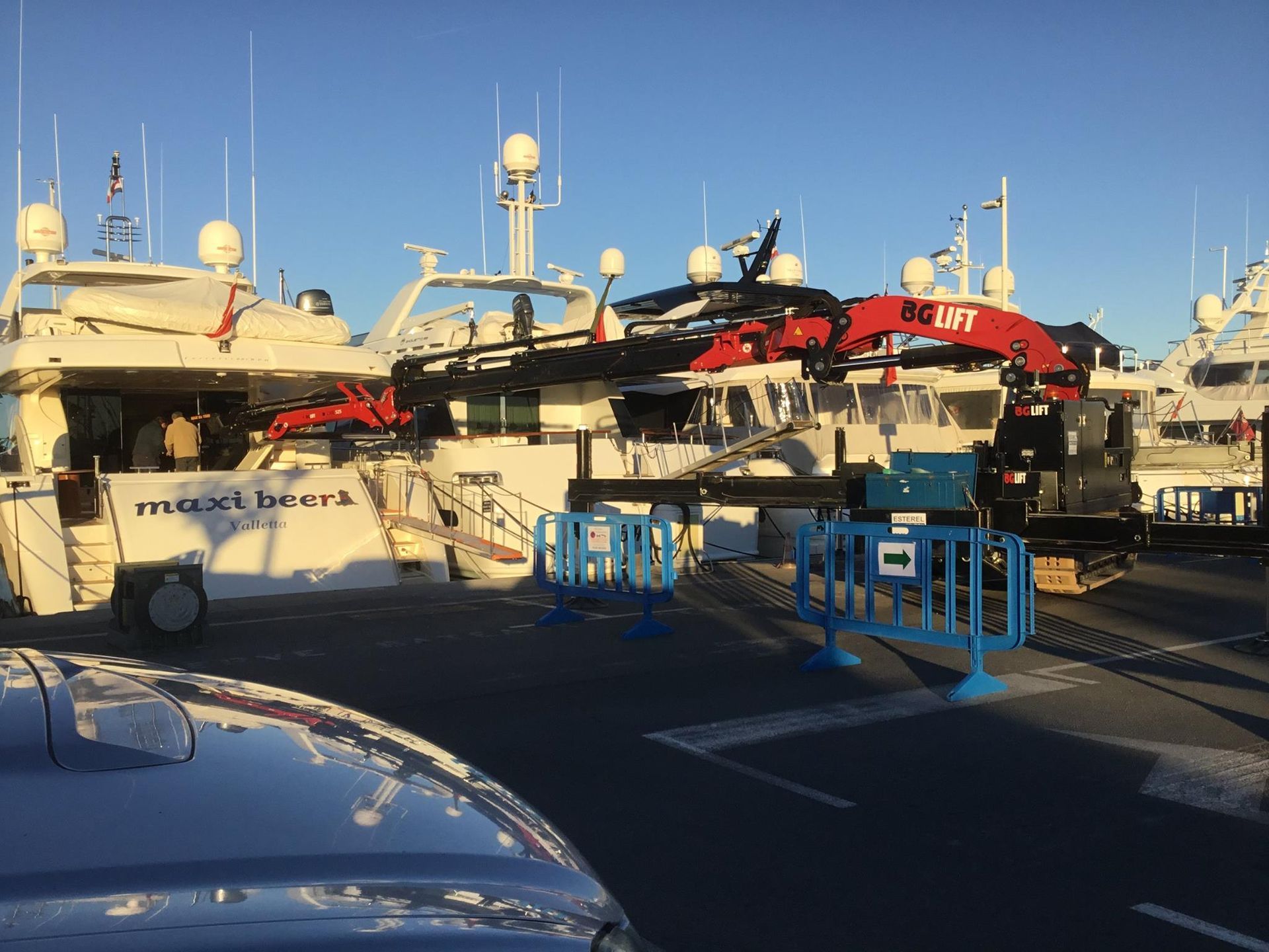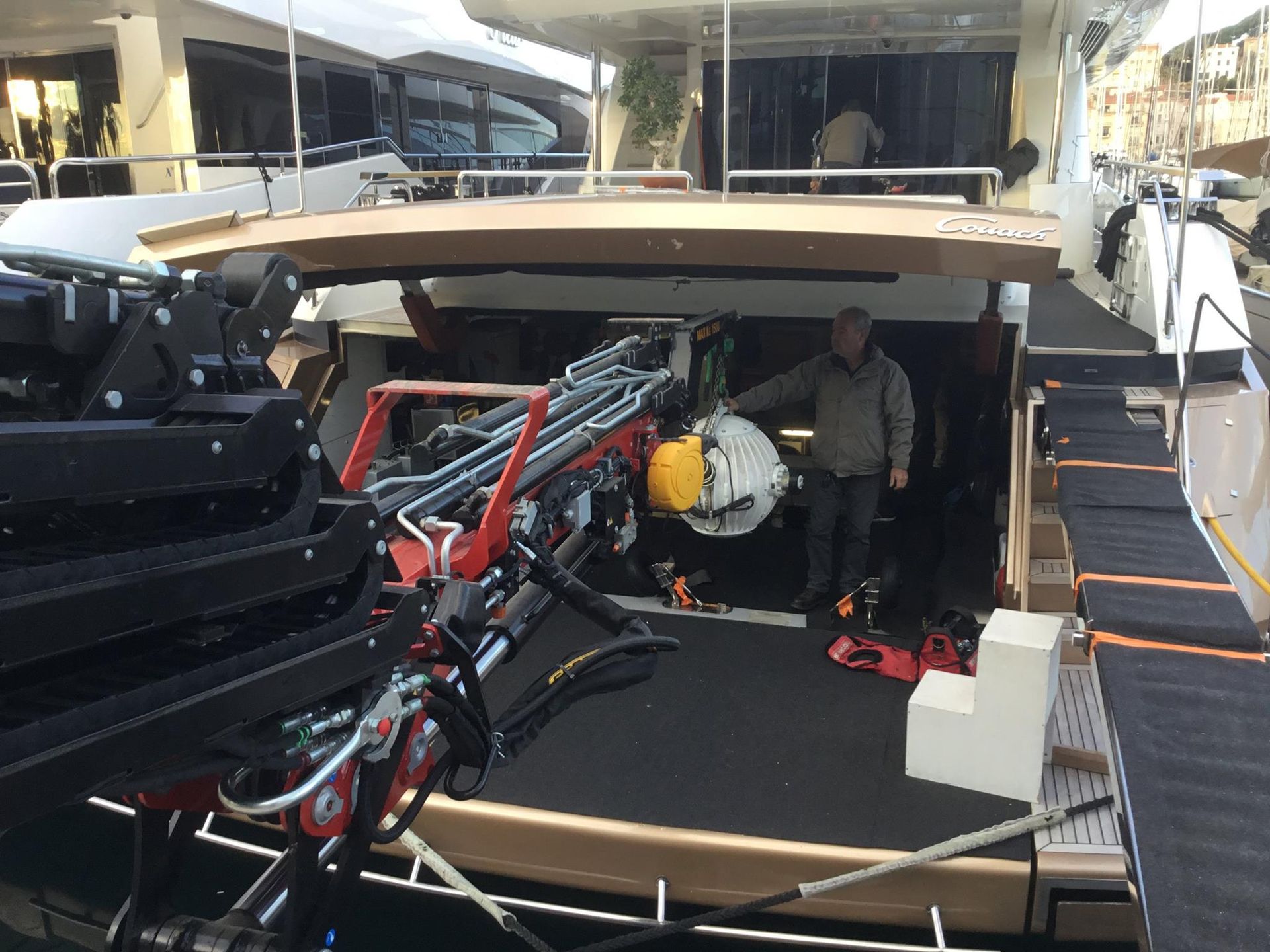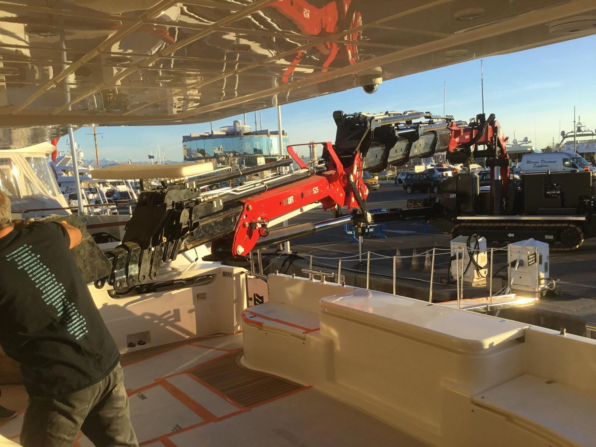 La grue peut se replier et s’introduire par une simple porte pour pouvoir opérer au plus près de la charge. Une fois dépliée, elle est capable de porter des charges allant jusqu’à 30 tonnes.
