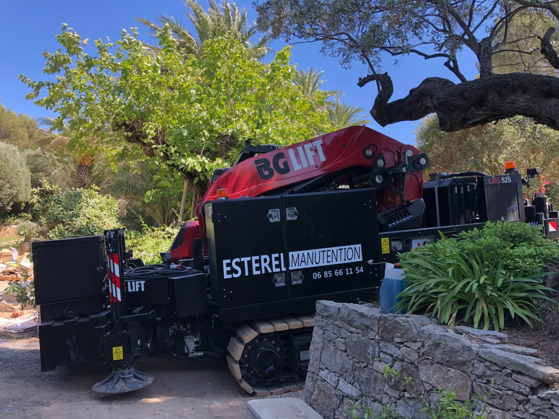 La mini grue araignée est très compacte et s’accommode à tout type d’environnement en accès difficile (espace confiné en intérieur, chantier en hauteur, terrain boueux et/on en pente…).